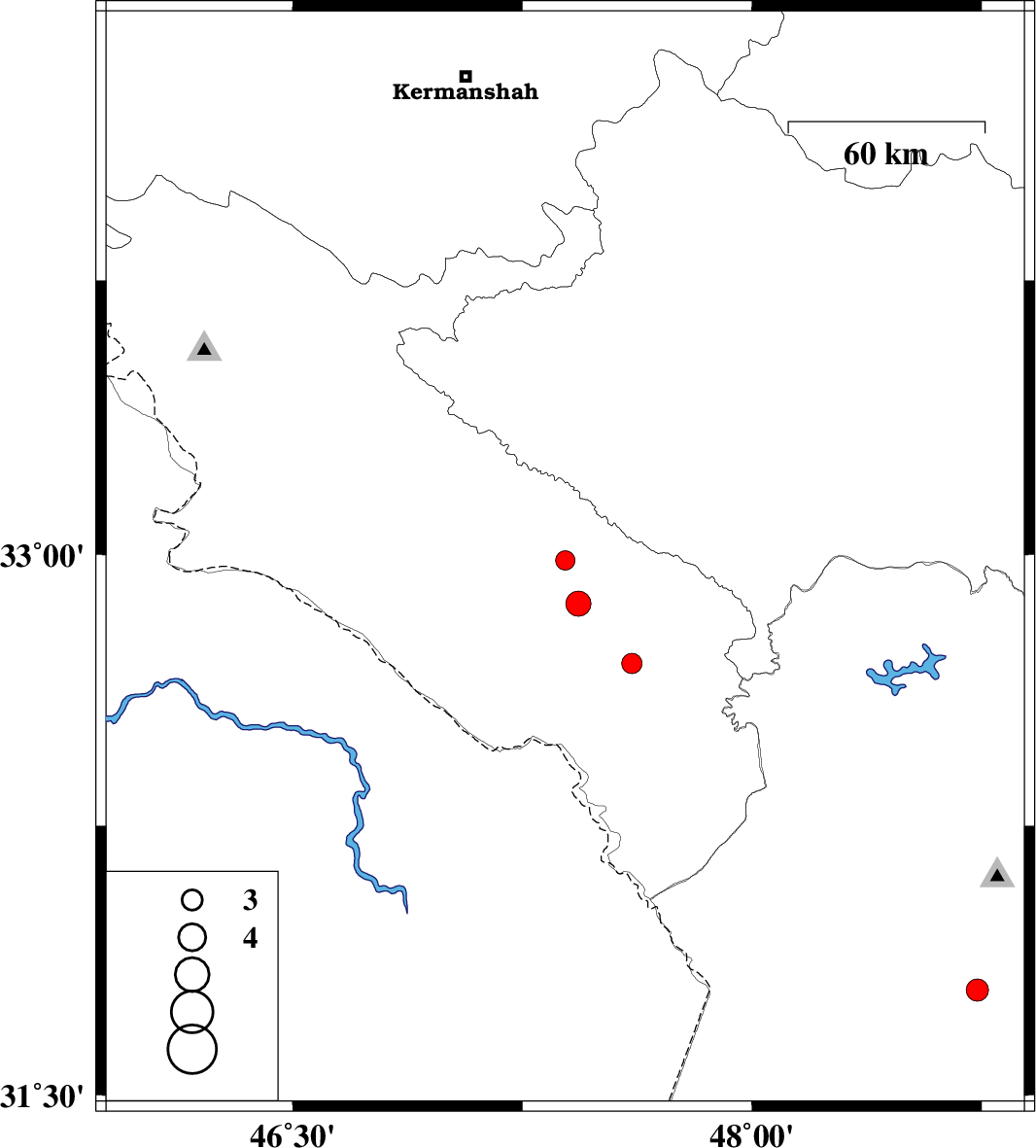 | 2019/02/18 | 11:10:59.1 | 14:40:59.1 | 32.983 | 47.39 | 18 | ML:2.8 | Ilam Province, 9 km of Abdanan | ||