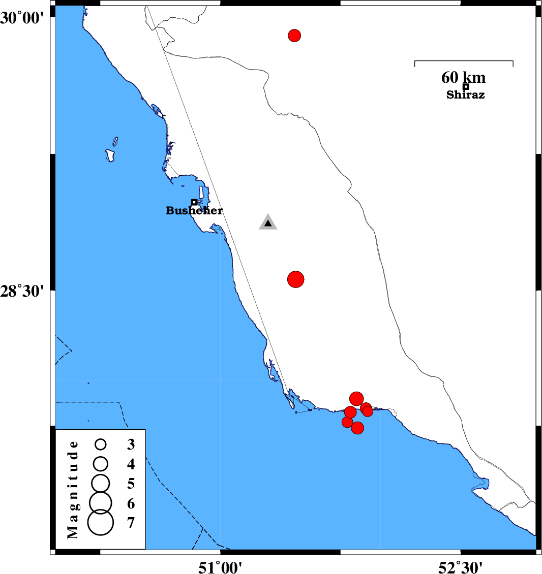 | 2019/03/02 | 05:56:50.9 | 09:26:50.9 | 27.9 | 51.85 | 31 | ML:3.9 | Bushehr Province, 22 km -West of Bandar-e kangan | ||