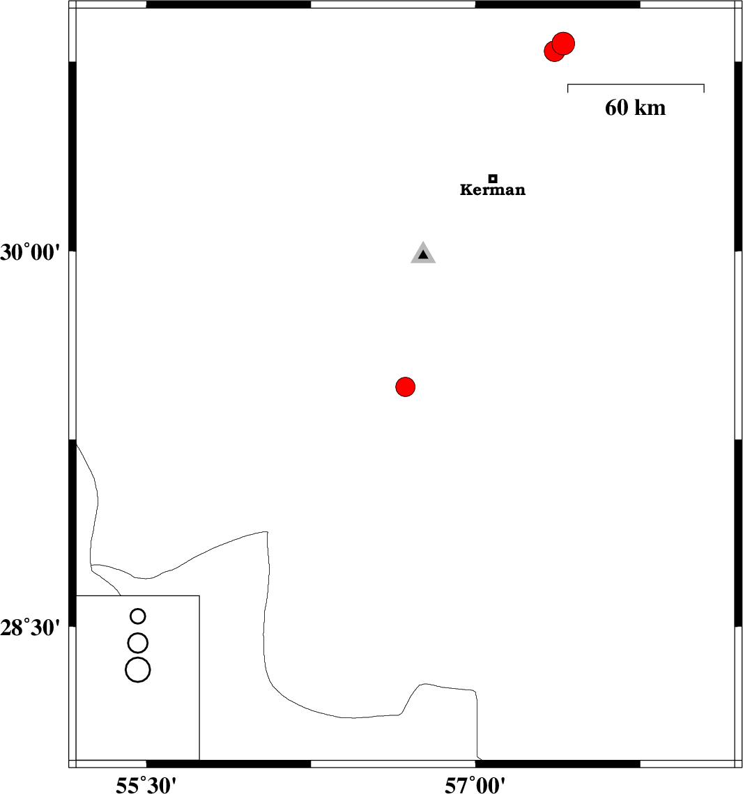 | 2019/05/06 | 10:50:51.4 | 15:20:51.4 | 29.46 | 56.68 | 15 | ML:3.9 | Kerman Province, 26 km North of Baft | ||