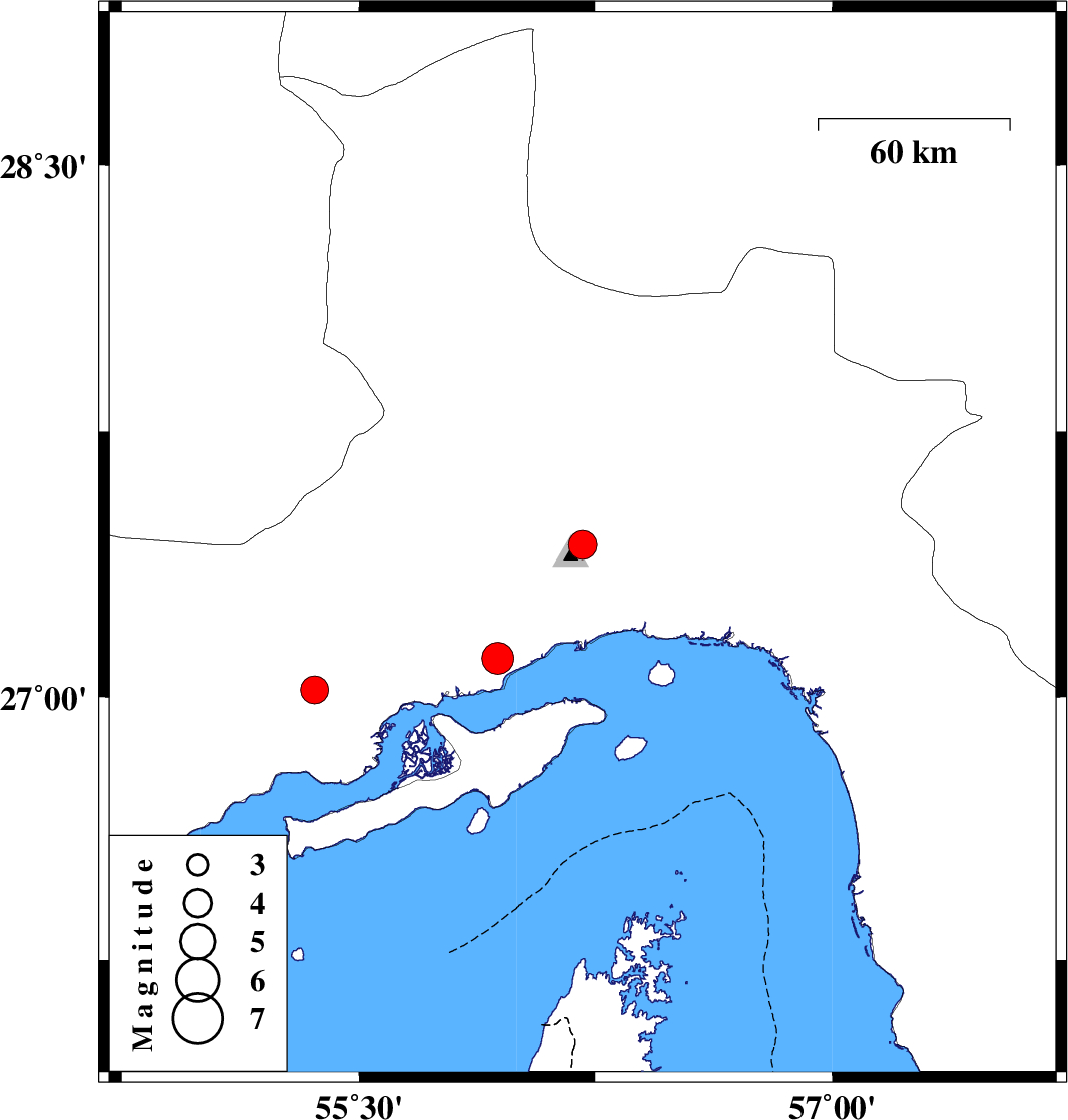 | 2019/04/16 | 05:42:15.0 | 10:12:15.0 | 27.02 | 55.36 | 32 | Mb:4 | Hormozgan Province, 90 km -West of Qeshm |
