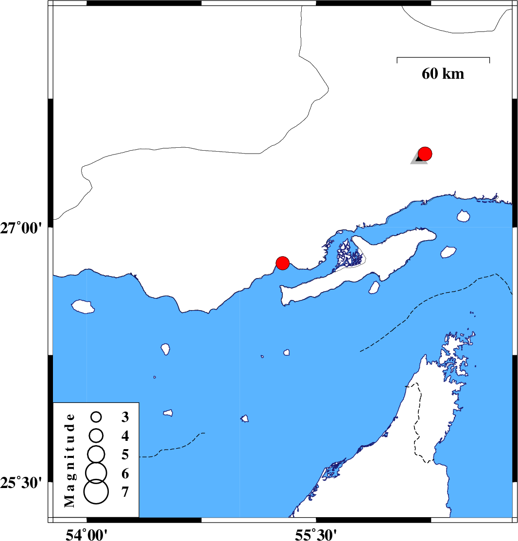 | 2019/05/10 | 02:41:54.7 | 07:11:54.7 | 27.43 | 56.21 | 21 | ML:4.1 | Hormozgan Province, 28 km North of Bandar-e abbas |