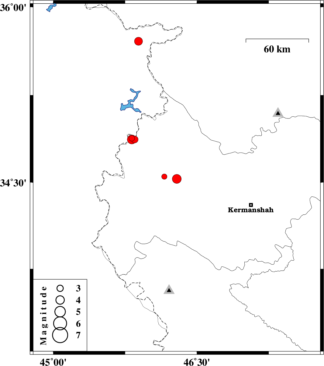 | 2019/05/25 | 06:02:13.5 | 10:32:13.5 | 34.55 | 46.16 | 12 | ML:2.5 | Kermanshah Province, 27 km -East of Sar-e pol-e zahab | ||