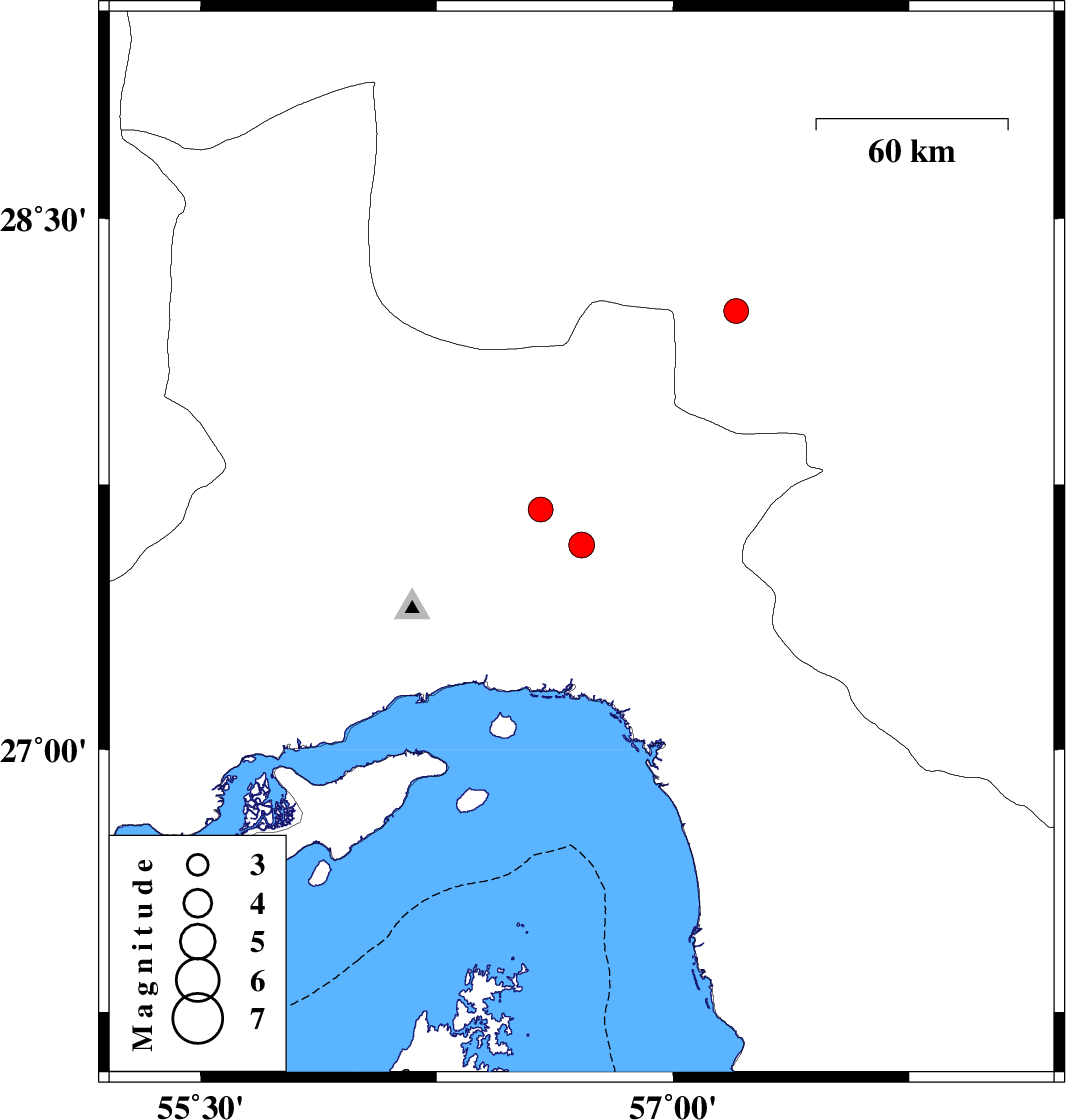 | 2019/05/31 | 04:16:01.9 | 08:46:01.9 | 27.68 | 56.58 | 10 | ML:3.5 | Hormozgan Province, 63 km North-East of Bandar-e abbas | ||