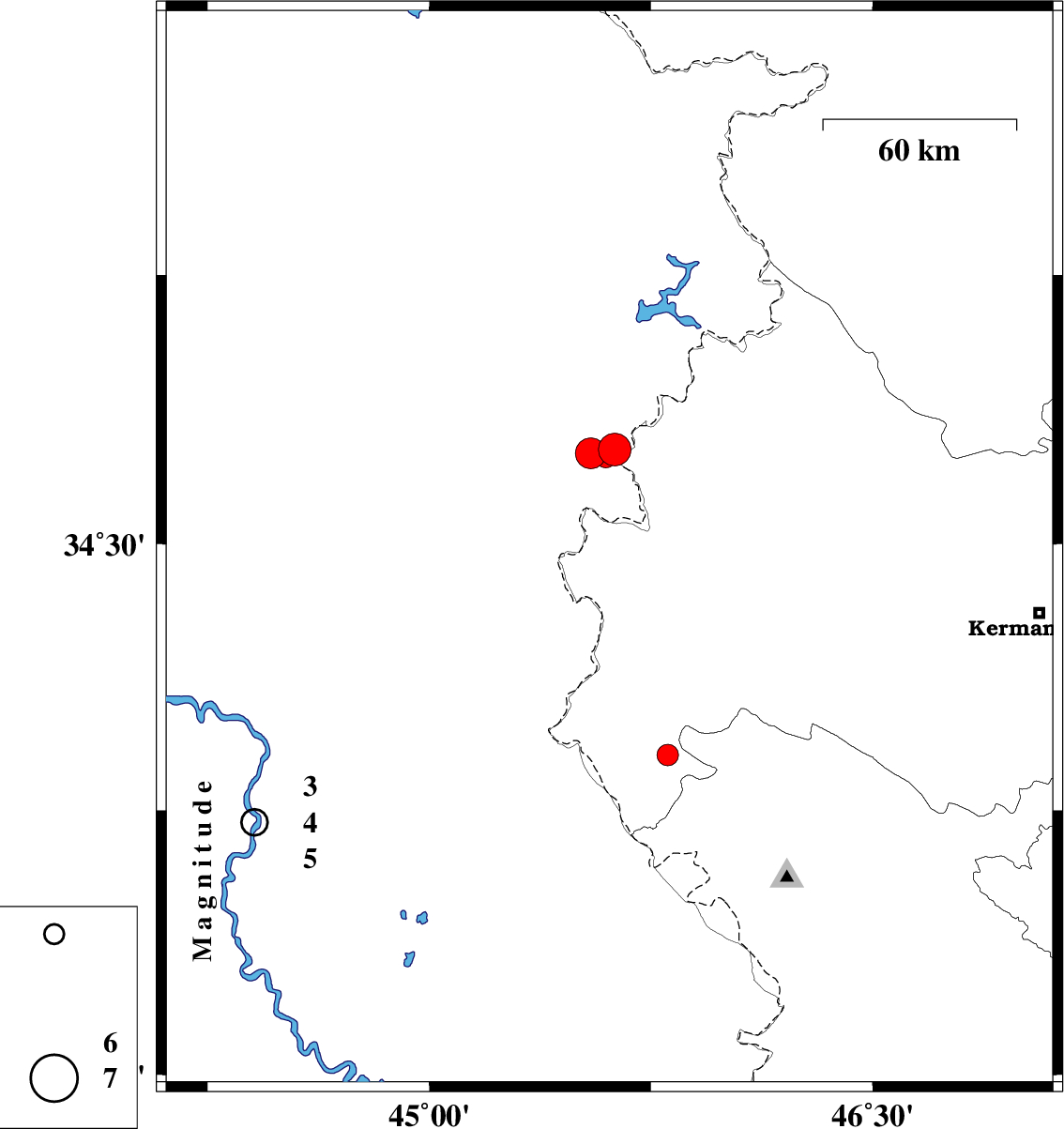 | 2019/06/05 | 03:36:16.5 | 08:06:16.5 | 34.48 | 45.61 | 13 | ML:5 | Kermanshah Province, 5 km of Qasr-E-Shirin | ||
