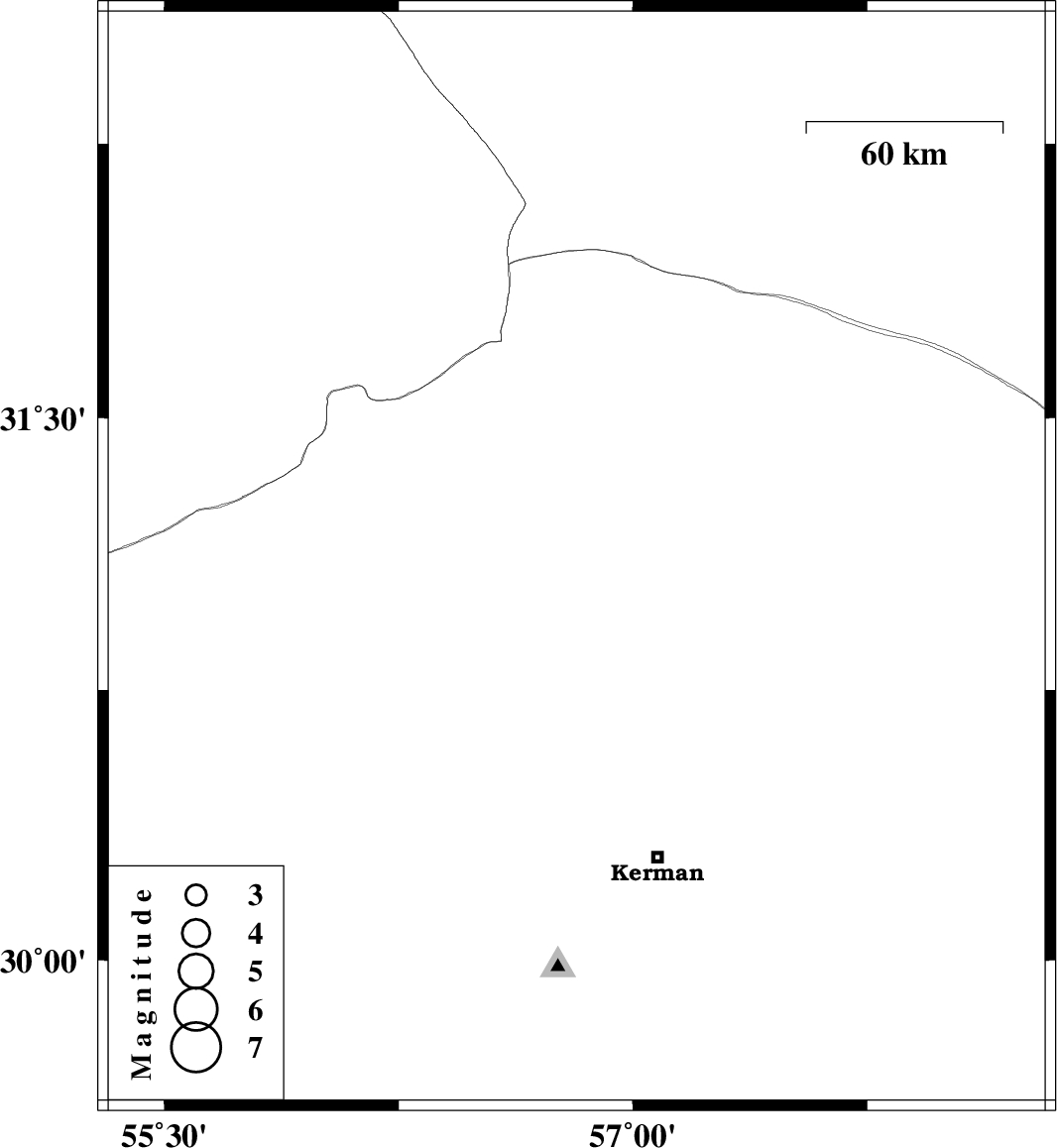 | 2019/06/15 | 07:08:26.7 | 11:38:26.7 | 31.11 | 56.82 | 10 | ML:4.5 | Kerman Province, 17 km South of Ravar |