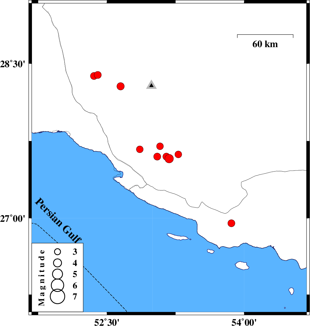 2019/06/14 08:54:35.5 13:24:35.5 27.753.0814 ML:3.4 Fars Province, 25 km North-East of Mehr