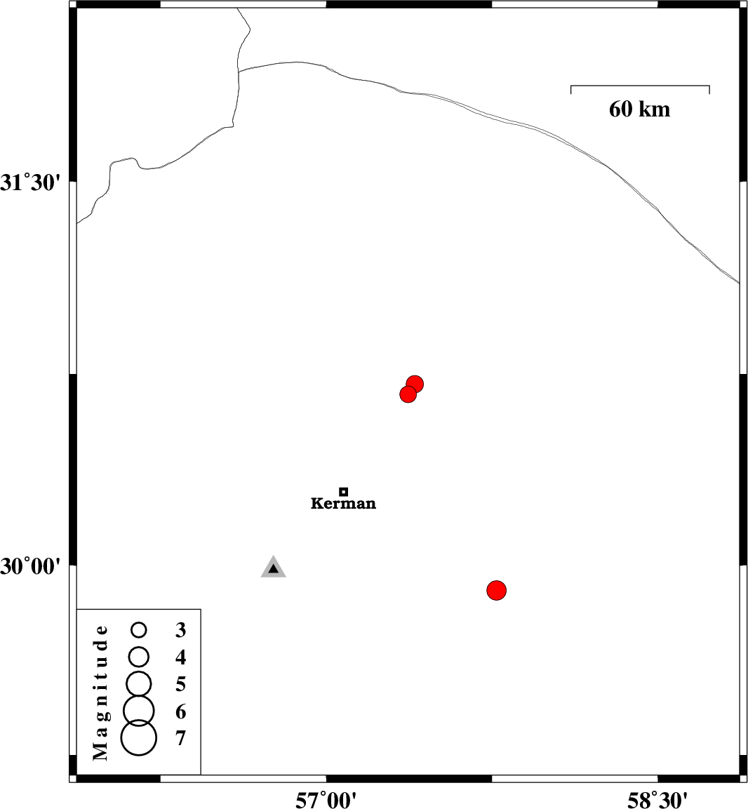 | 2019/06/24 | 21:02:00.7 | 01:32:00.7 | 29.9 | 57.77 | 9 | Mb:3.9 | Kerman Province, 79 km South-East of Kerman | ||