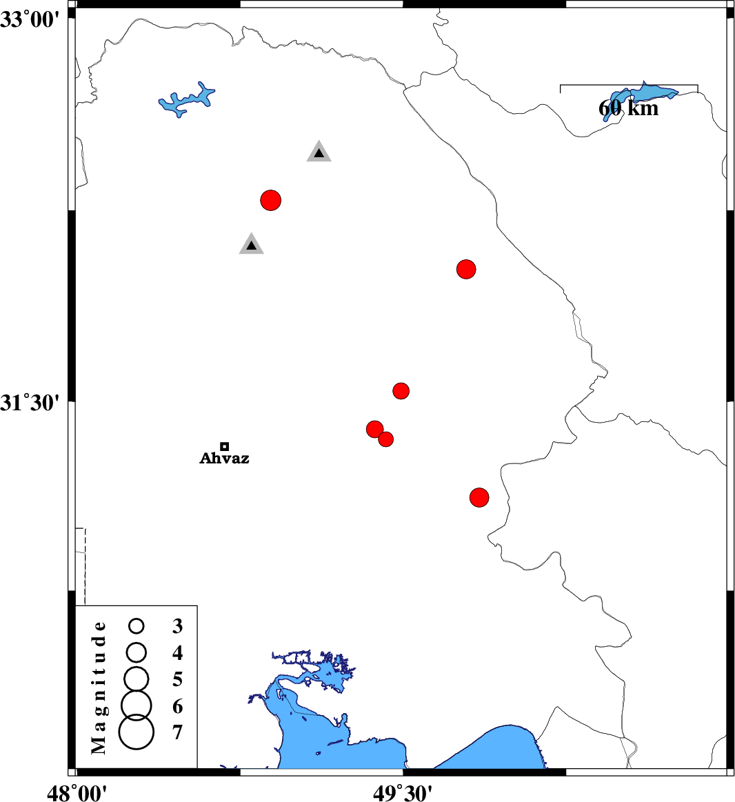| 2019/06/30 | 22:07:46.0 | 02:37:46.0 | 31.54 | 49.49 | 10 | ML:3.4 | Khoozestan Province, 31 km North-West of Ramhormoz | ||