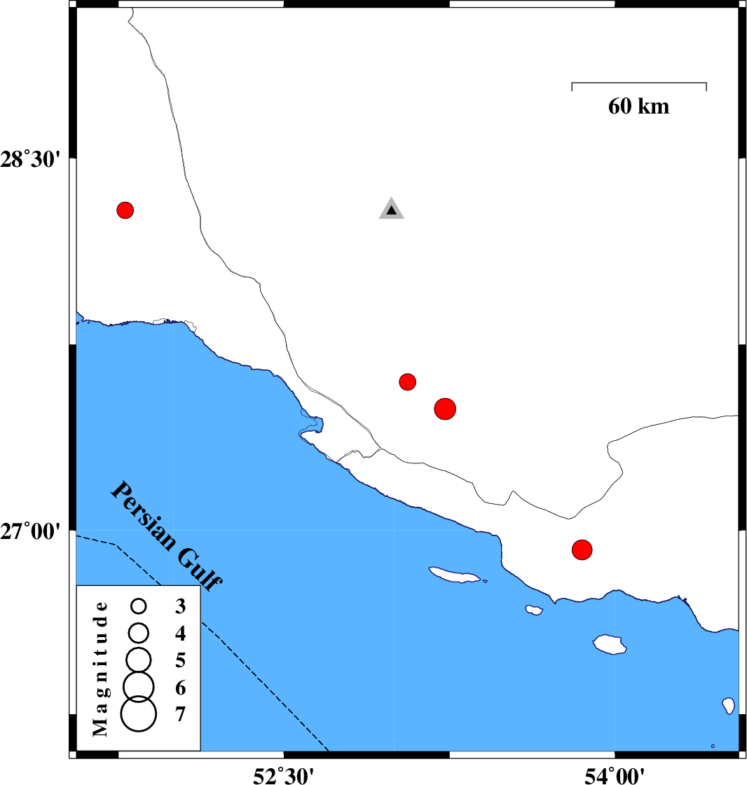 | 2019/06/29 | 11:09:31.8 | 15:39:31.8 | 28.29 | 51.78 | 28 | ML:3.4 | Bushehr Province, 58 km North-West of Bandar-e kangan | ||