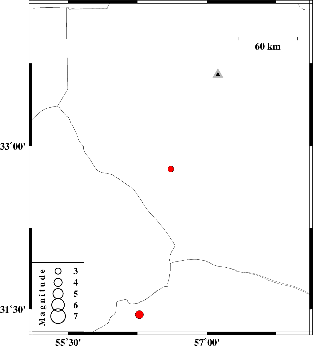 | 2019/07/05 | 08:26:29.3 | 12:56:29.3 | 32.79 | 56.61 | 10 | ML:2.9 | Yazd Province, 95 km South-West of Tabas | ||