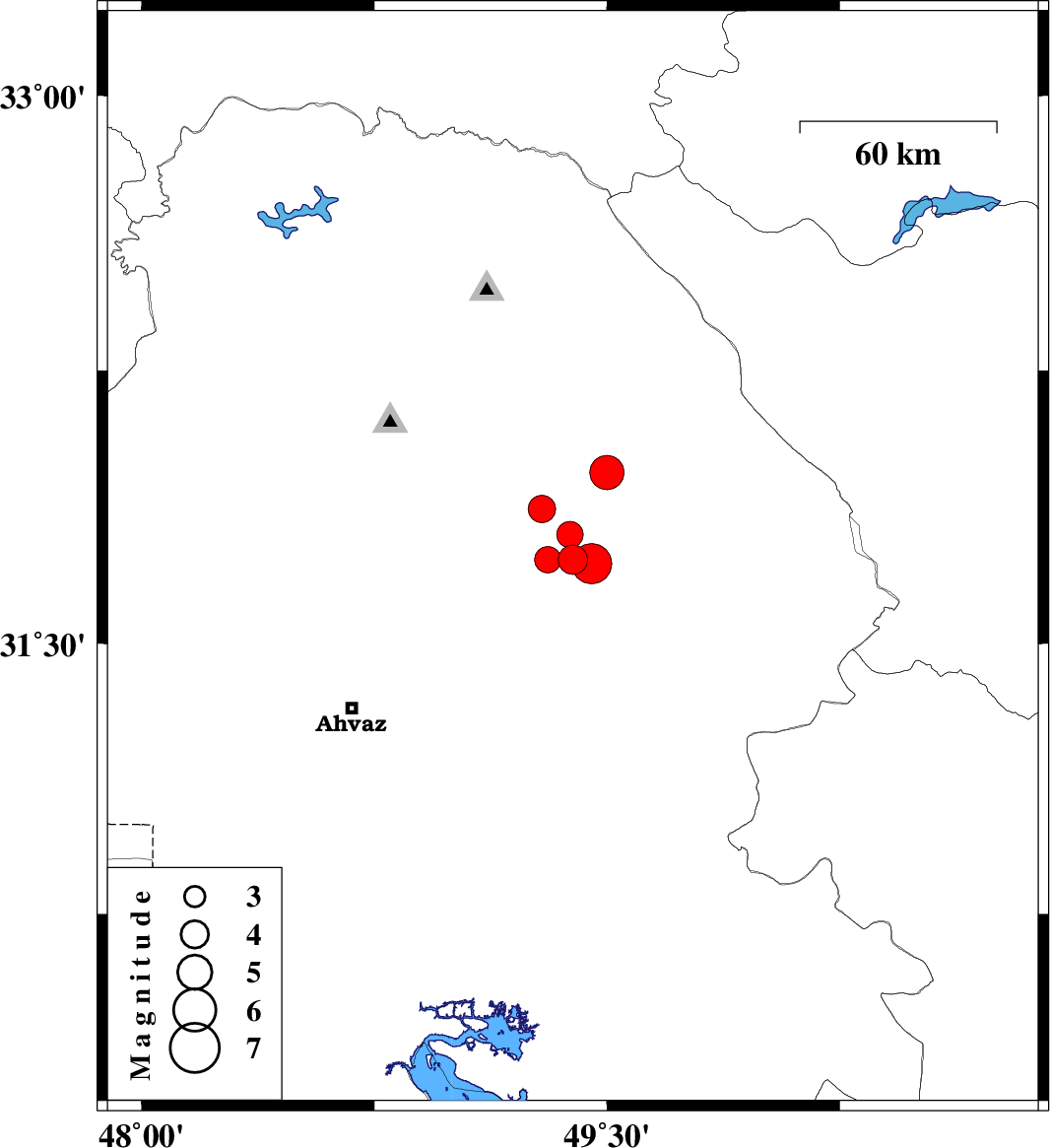 | 2019/07/08 | 07:00:32.6 | 11:30:32.6 | 31.72 | 49.45 | 10 | Mb:5.8 | Khoozestan Province, 28 km South-East of Masjed Soleyman |