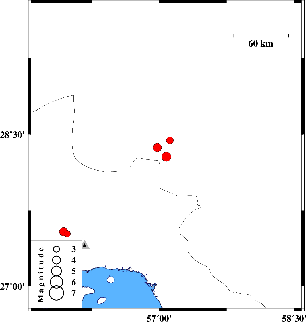 | 2019/06/17 | 13:32:25.8 | 18:02:25.8 | 27.54 | 55.94 | 10 | ML:4.3 | Hormozgan Province, 52 km North-West of Bandar-e abbas |