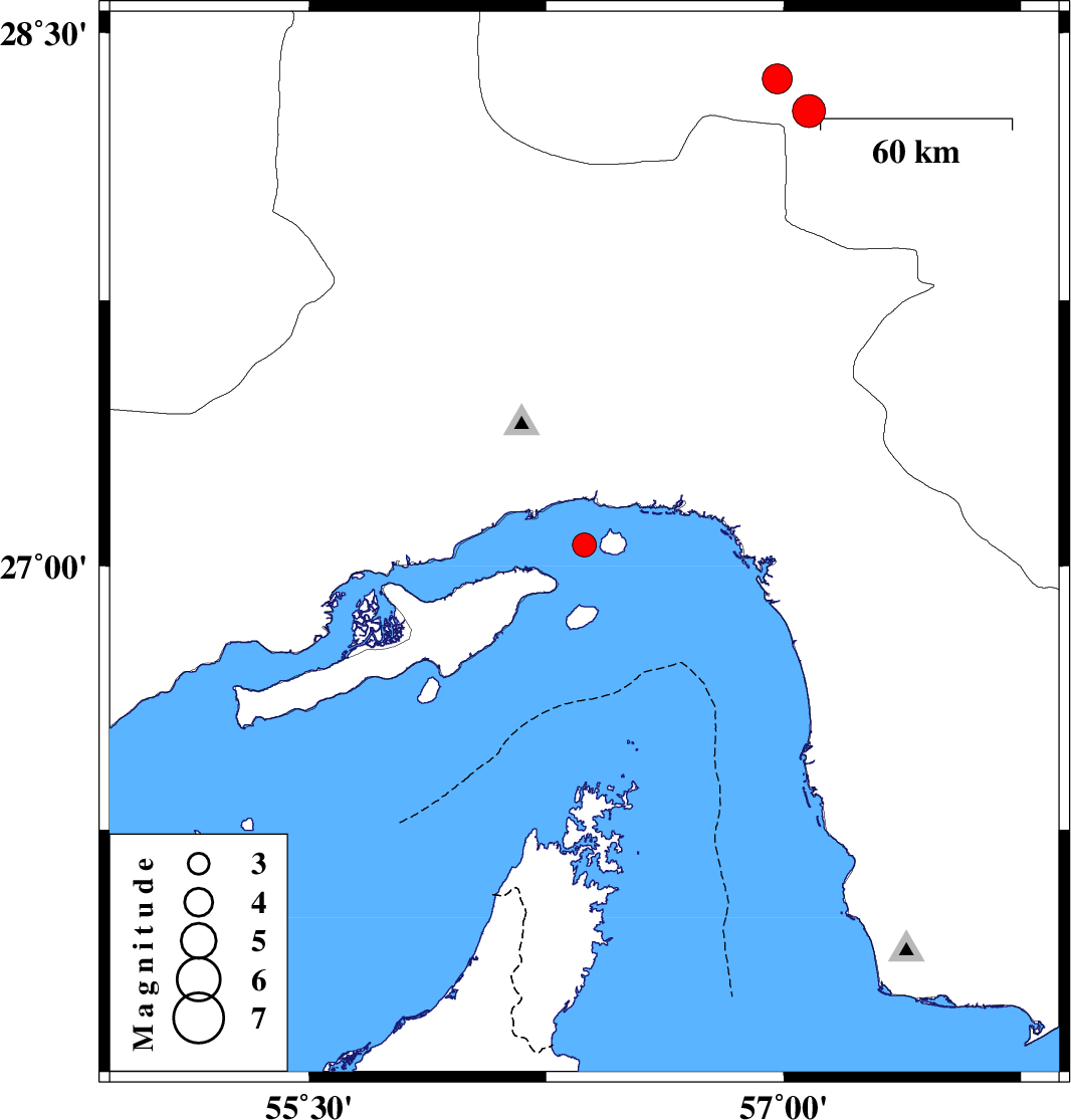 | 2019/07/19 | 08:09:46.1 | 12:39:46.1 | 27.06 | 56.37 | 10 | ML:3.4 | Persian Gulf, 15 km North-East of Qeshm | ||