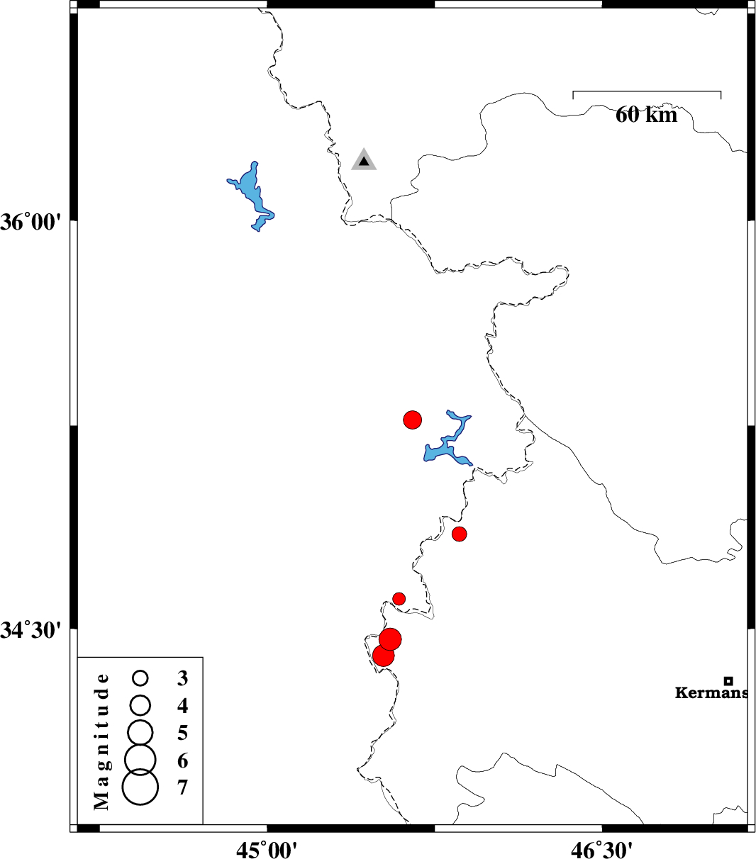 | 2019/08/12 | 04:52:13.8 | 09:22:13.8 | 35.27 | 45.65 | 9 | ML:3.7 | Iraq, 38 km South-East of Sulaymaniyah | ||