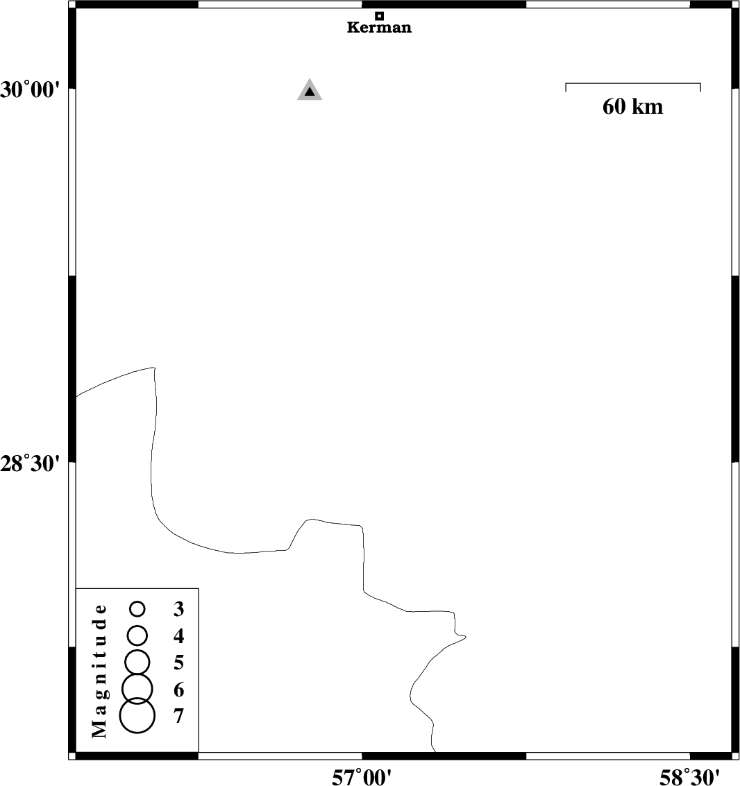 | 2019/08/26 | 20:24:12.8 | 00:54:12.8 | 28.82 | 57.19 | 14 | ML:3.2 | Kerman Province, 56 km North-West of Jiroft |