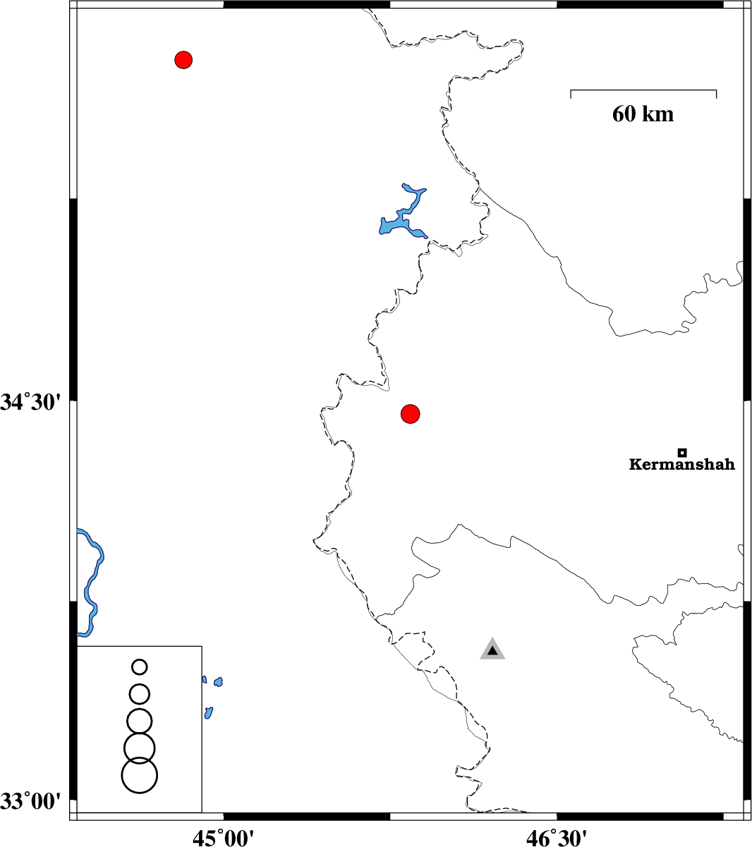 | 2019/08/29 | 16:45:31.8 | 21:15:31.8 | 34.45 | 45.84 | 10 | ML:3.8 | Kermanshah Province, 5 km of Sar-e pol-e zahab | ||