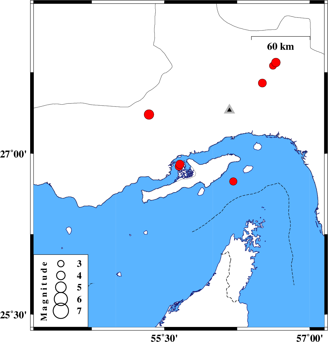 | 2019/09/08 | 12:05:15.6 | 16:35:15.6 | 26.88 | 55.65 | 14 | ML:3.7 | Persian Gulf, 62 km -West of Qeshm | ||