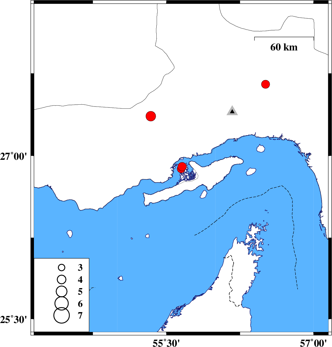 2019/09/05 22:02:15.7 02:32:15.7 27.6556.5114 ML:3.8 Hormozgan Province, 56 km North-East of Bandar-e abbas