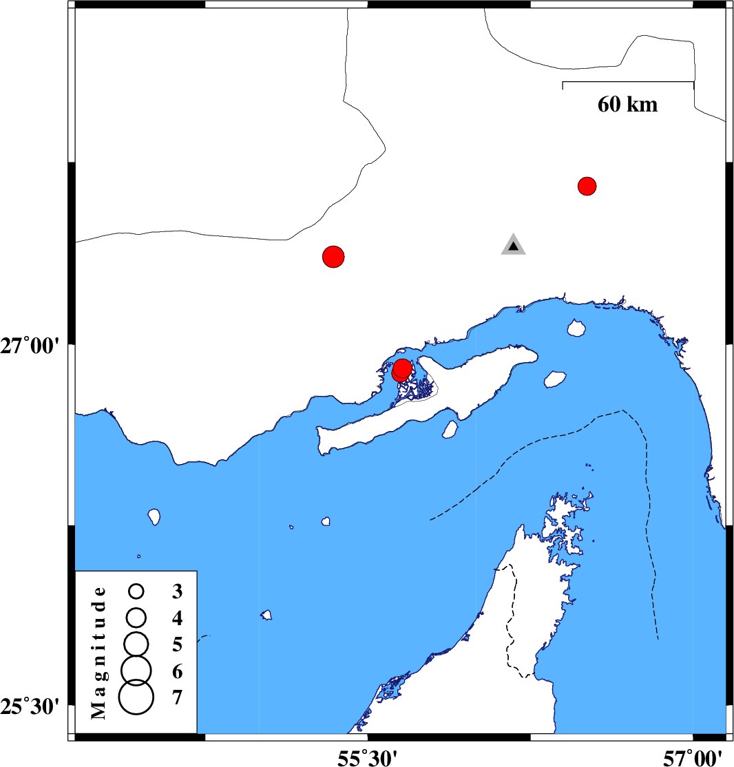 | 2019/09/08 | 12:05:15.6 | 16:35:15.6 | 26.88 | 55.65 | 14 | ML:3.7 | Persian Gulf, 62 km -West of Qeshm | ||