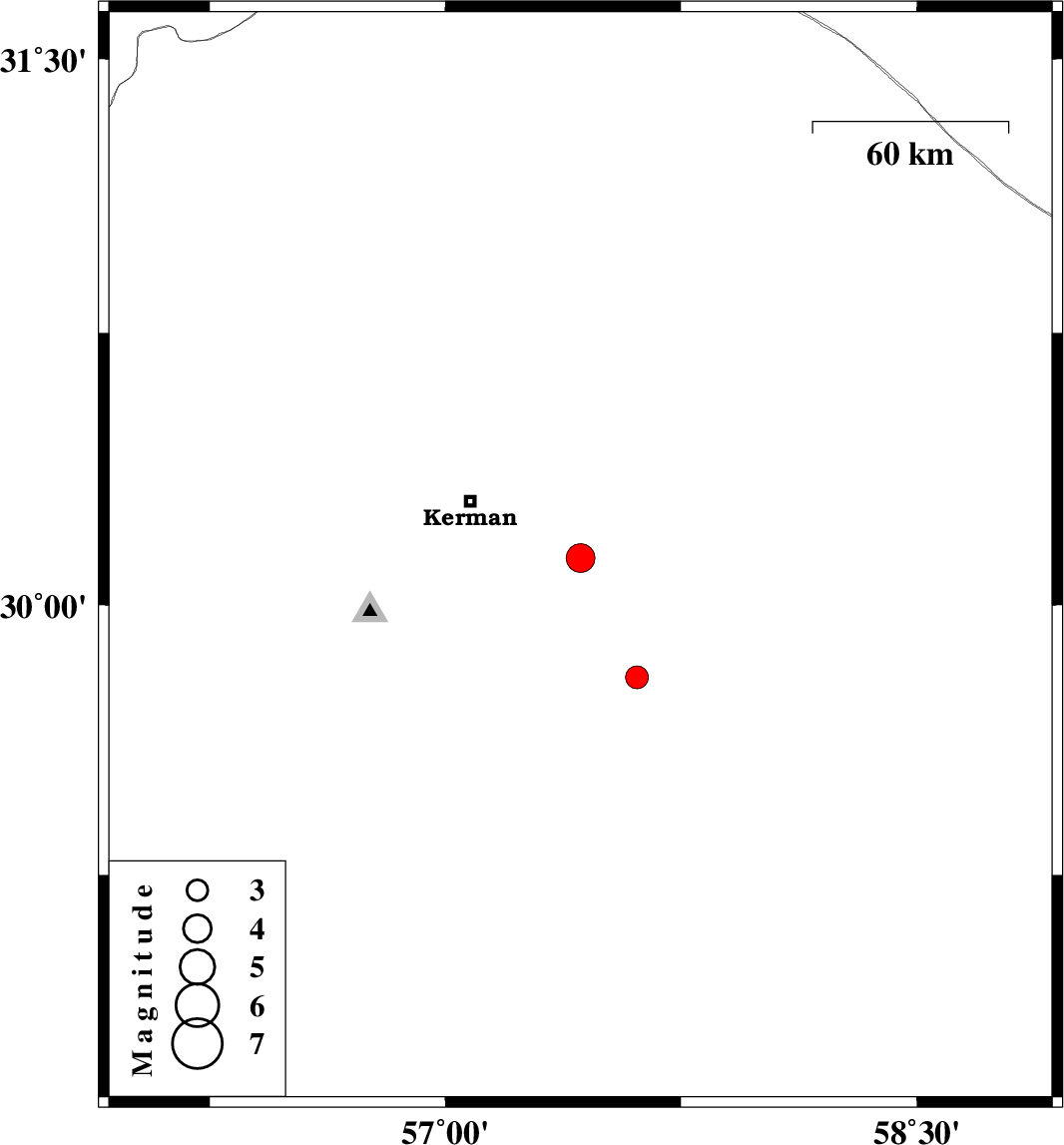 | 2019/09/11 | 17:02:29.3 | 21:32:29.3 | 30.13 | 57.43 | 25 | ML:4.1 | Kerman Province, 38 km South-East of Kerman | ||