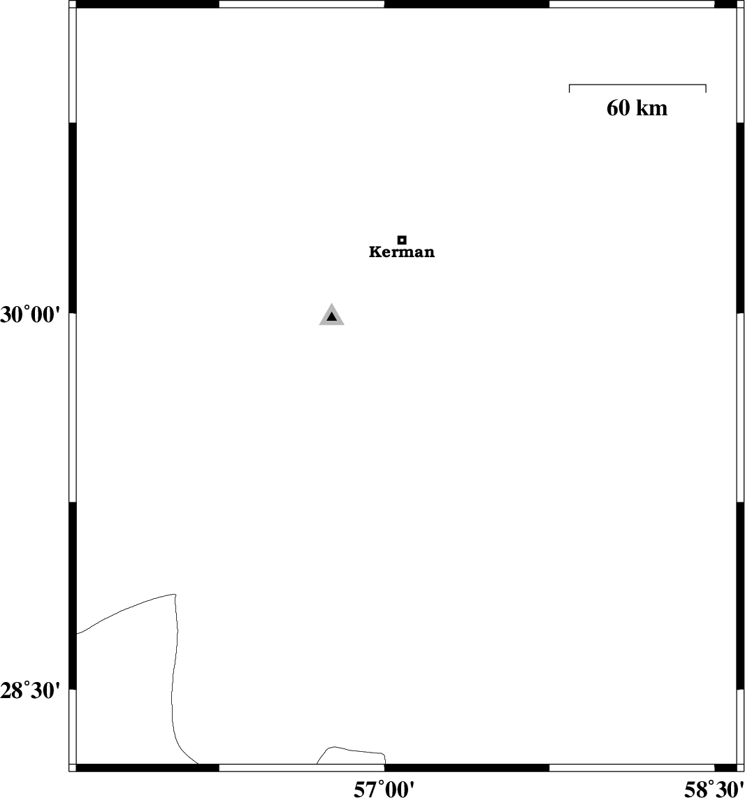 | 2019/09/11 | 16:48:27.0 | 21:18:27.0 | 29.8 | 57.61 | 14 | ML:3.3 | Kerman Province, 75 km South-East of Kerman |