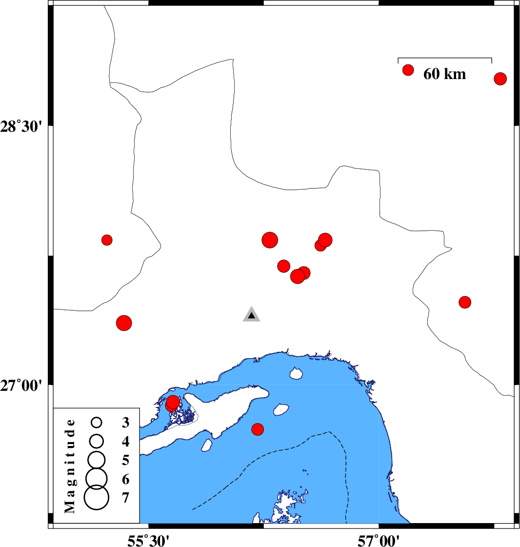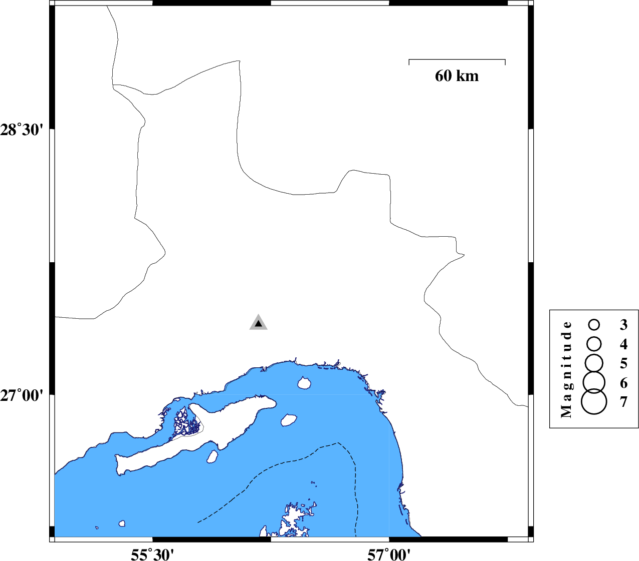 2019/09/05 22:02:15.7 02:32:15.7 27.6556.5114 ML:3.8 Hormozgan Province, 56 km North-East of Bandar-e abbas