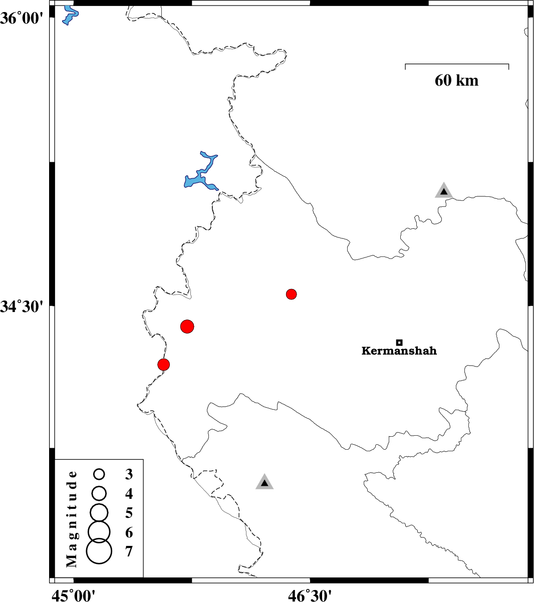 | 2019/09/21 | 22:39:49.9 | 02:09:49.9 | 34.19 | 45.57 | 14 | ML:3.4 | Kermanshah Province, 36 km South of Qasr-E-Shirin |