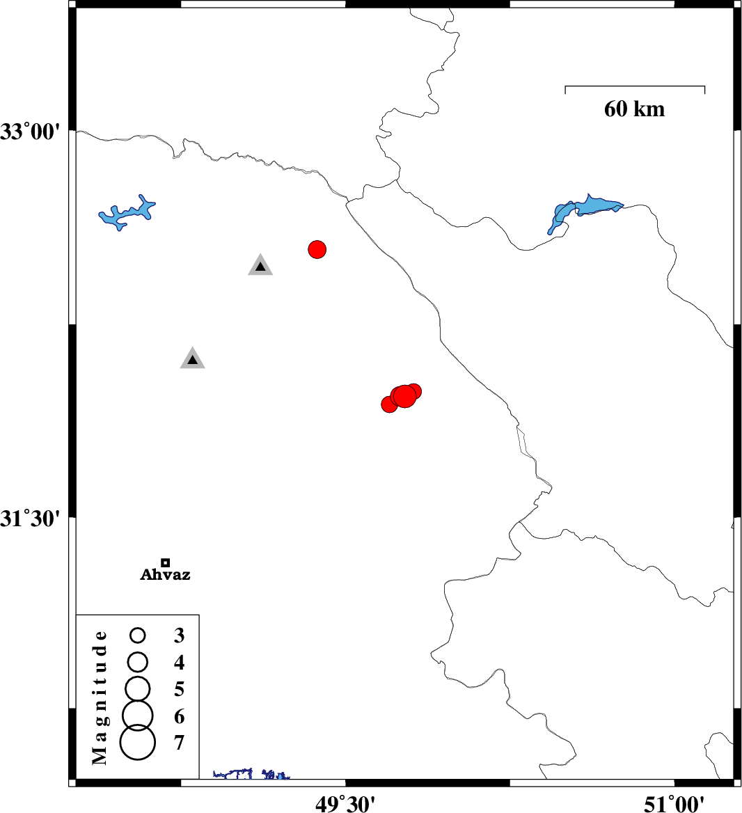 | 2019/09/24 | 09:02:59.3 | 12:32:59.3 | 31.97 | 49.77 | 20 | ML:4.7 | Khoozestan Province, 18 km North of Izeh | ||