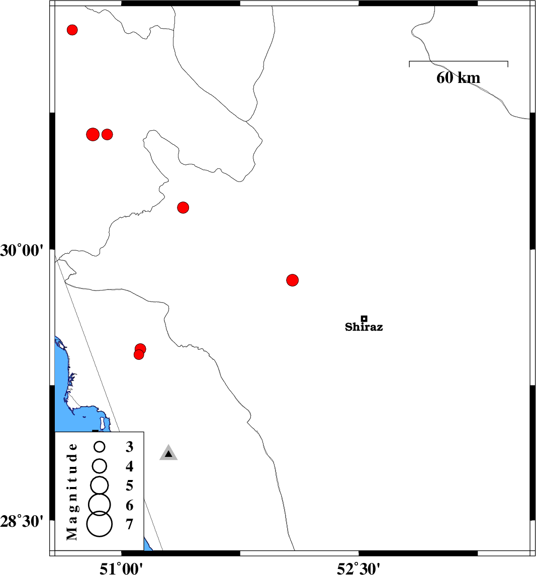 | 2019/09/22 | 19:04:16.1 | 22:34:16.1 | 29.45 | 51.12 | 14 | ML:3.1 | Bushehr Province, 23 km North of Borazjan | ||