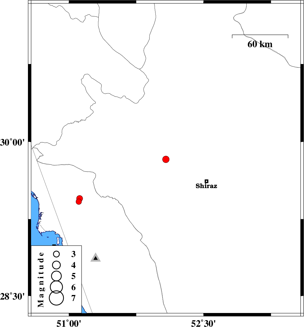| 2019/09/22 | 19:04:16.1 | 22:34:16.1 | 29.45 | 51.12 | 14 | ML:3.1 | Bushehr Province, 23 km North of Borazjan |