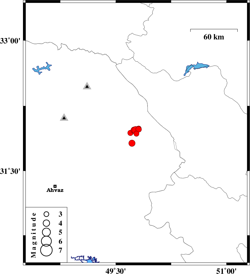 | 2019/09/25 | 13:17:34.8 | 16:47:34.8 | 31.82 | 49.72 | 28 | ML:4 | Khoozestan Province, 14 km -West of Izeh | ||