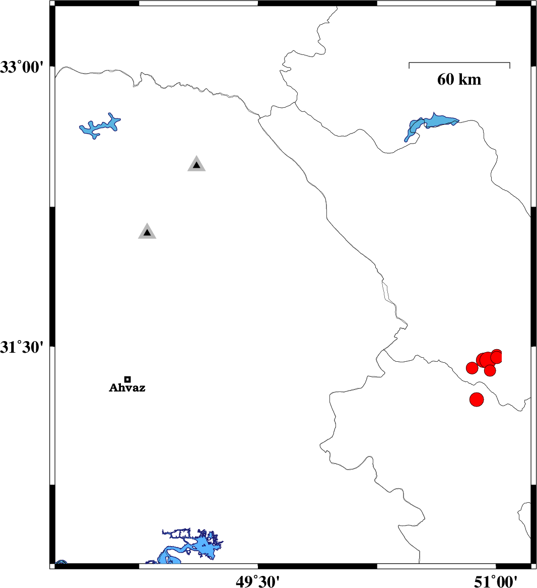 | 2019/09/25 | 13:17:34.8 | 16:47:34.8 | 31.82 | 49.72 | 28 | ML:4 | Khoozestan Province, 14 km -West of Izeh | ||