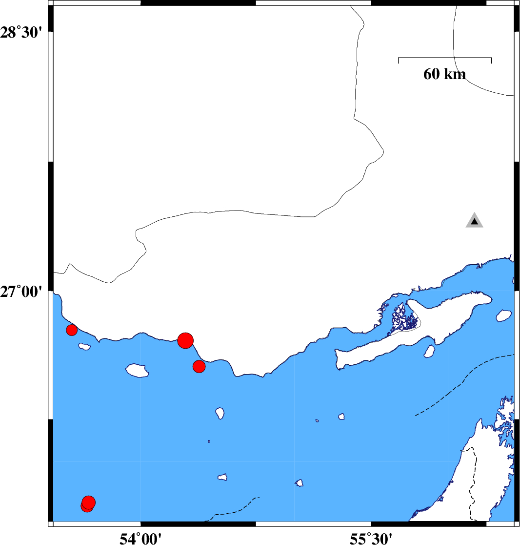 Persian Gulf, 62 km -West of Qeshm | |