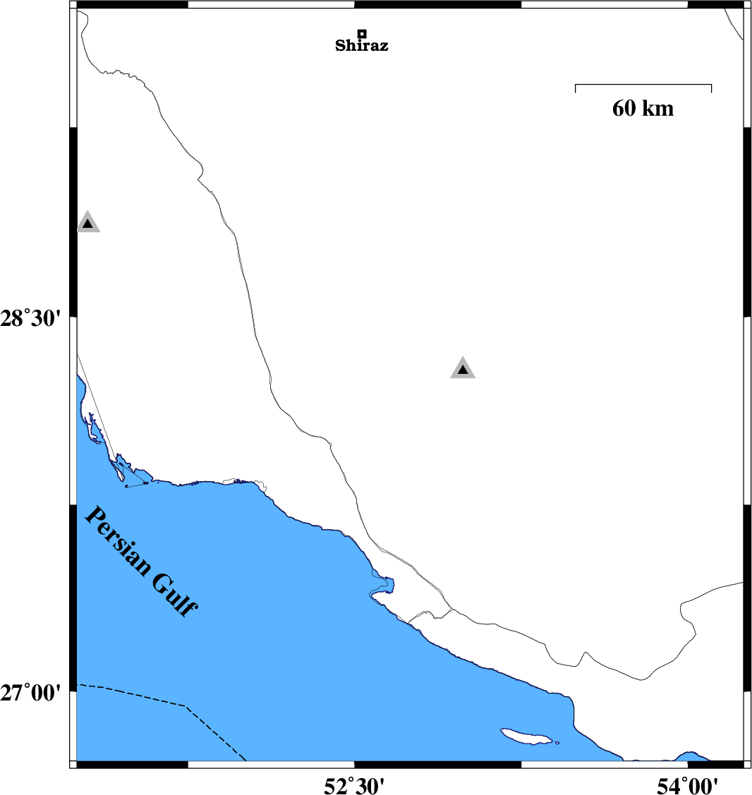 | 2019/09/26 | 14:23:51.5 | 17:53:51.5 | 28.22 | 52.75 | 5 | ML:3.1 | Fars Province, 39 km South-West of Qir va Karzin | ||
