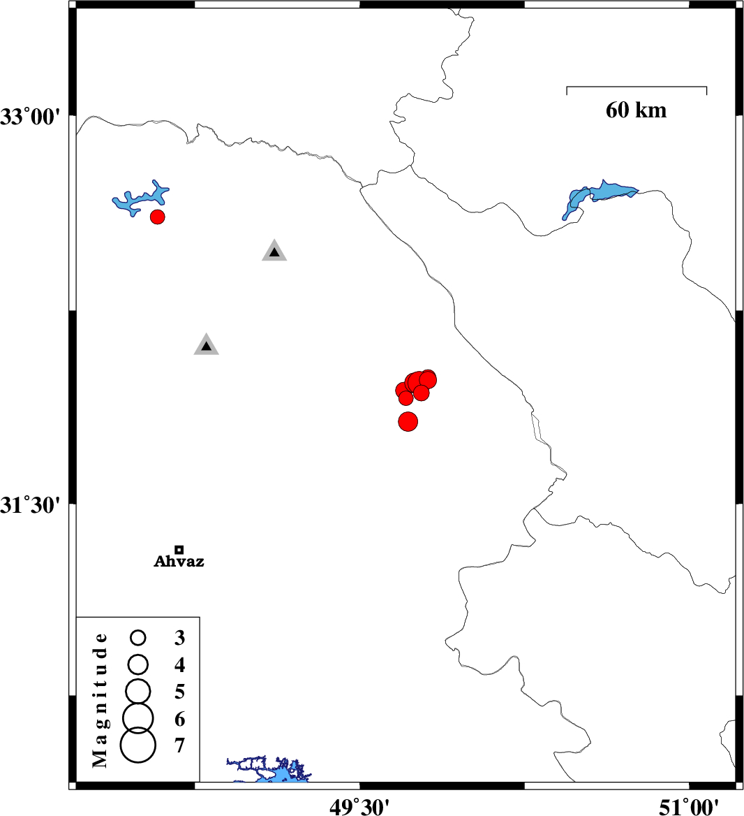 | 2019/09/30 | 08:48:43.4 | 12:18:43.4 | 31.91 | 49.71 | 14 | ML:3 | Khoozestan Province, 17 km -West of Izeh | ||