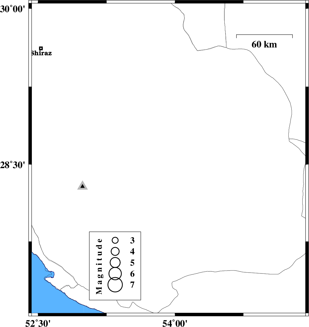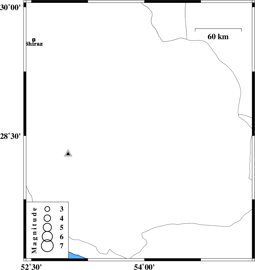 | 2019/09/06 | 14:22:50.9 | 18:52:50.9 | 28.55 | 53.93 | 11 | ML:3.5 | Fars Province, 37 km -East of Jahrom |