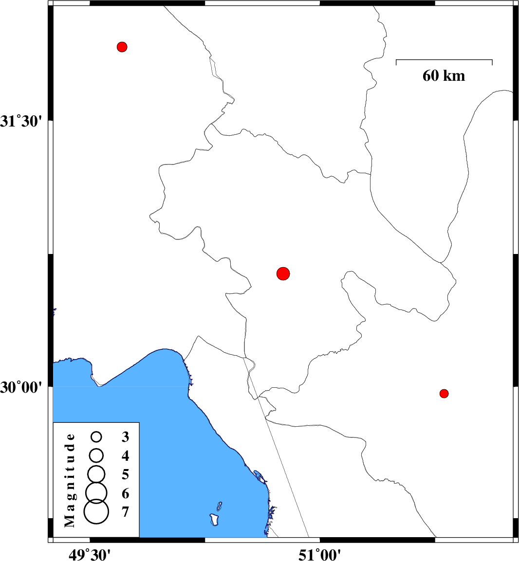 | 2019/10/02 | 08:35:12.9 | 12:05:12.9 | 29.96 | 51.81 | 5 | ML:2.6 | Fars Province, 33 km South-East of Nurabad | ||