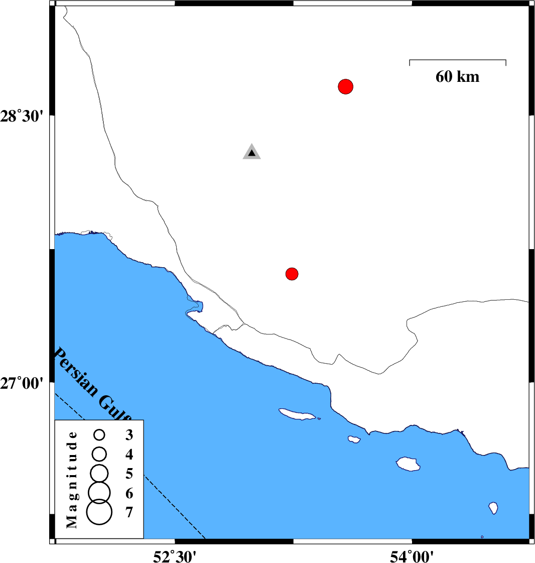 | 2019/10/04 | 08:43:09.7 | 12:13:09.7 | 27.61 | 53.24 | 14 | ML:3.5 | Fars Province, 32 km North of Lamerd | ||