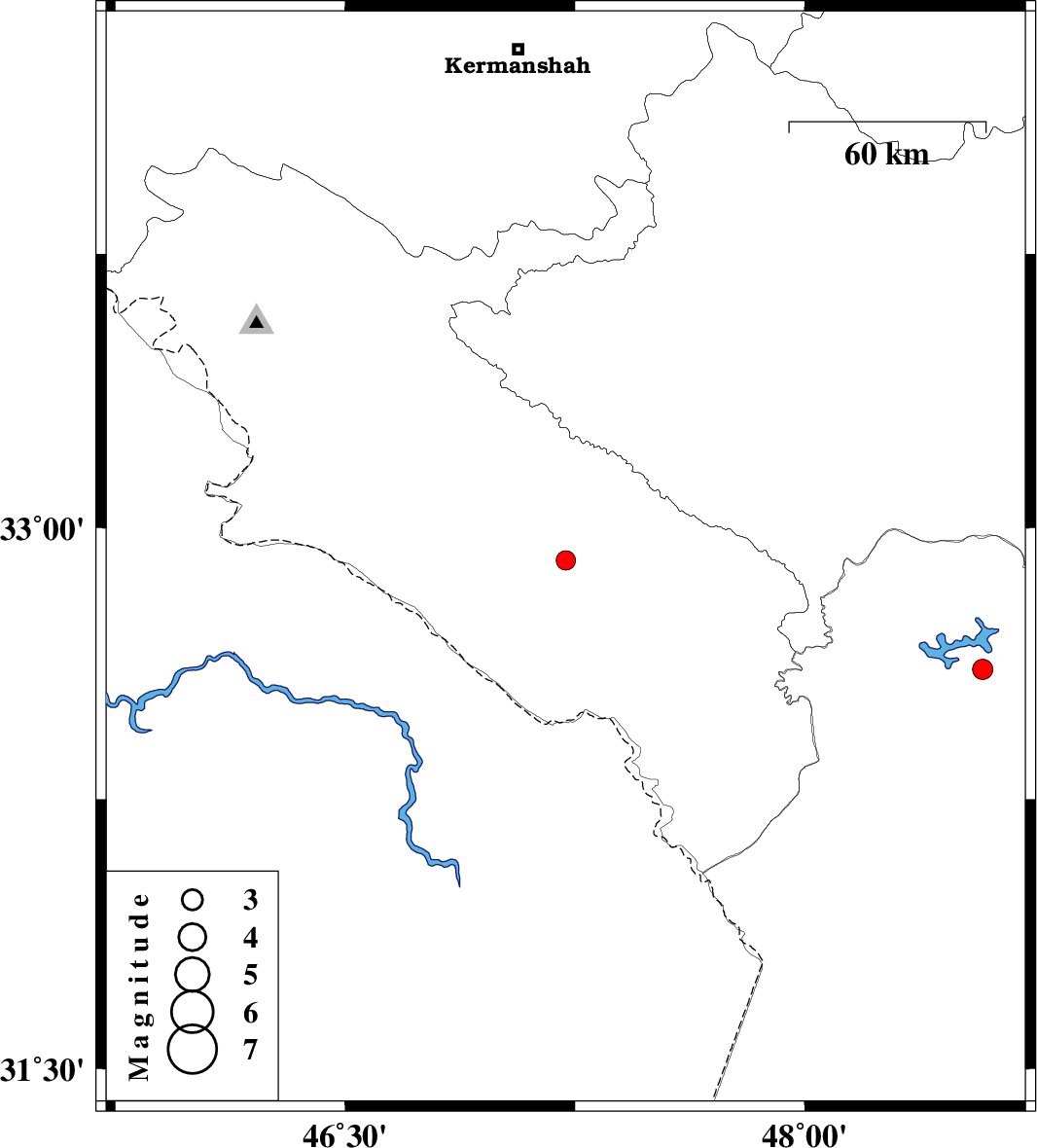 | 2019/10/05 | 04:15:58.9 | 07:45:58.9 | 32.91 | 47.22 | 14 | ML:2.8 | Ilam Province, 24 km North of Dehloran | ||