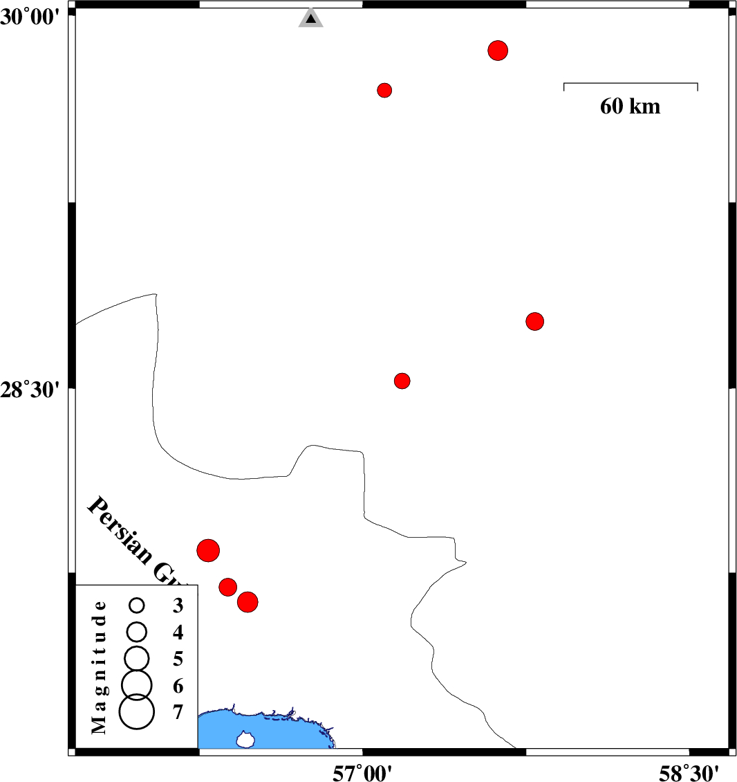 | 2019/09/13 | 21:05:43.2 | 01:35:43.2 | 29.7 | 57.1 | 11 | ML:3 | Kerman Province, 65 km South of Kerman |