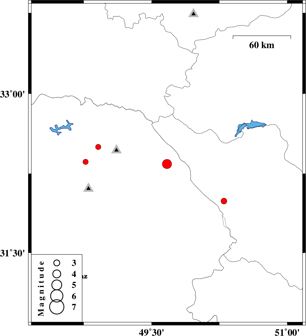| 2019/10/05 | 06:32:06.8 | 10:02:06.8 | 32.36 | 48.77 | 14 | ML:2.7 | Khoozestan Province, 32 km -West of Lali |