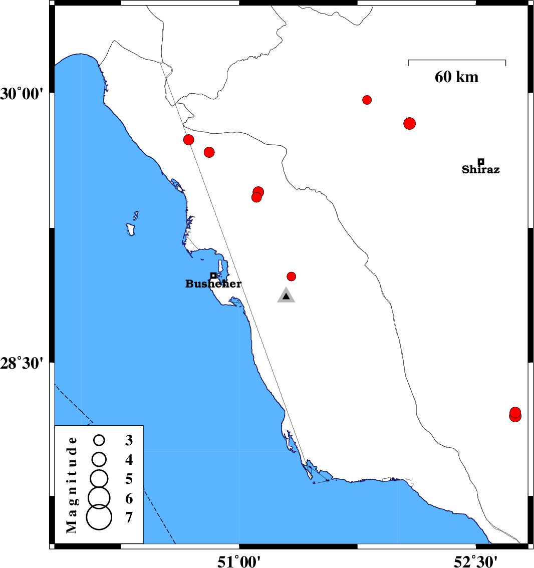 | 2019/10/05 | 11:49:59.6 | 15:19:59.6 | 29.74 | 50.68 | 14 | ML:3 | Bushehr Province, 24 km North-East of Bandar-e genaveh | ||