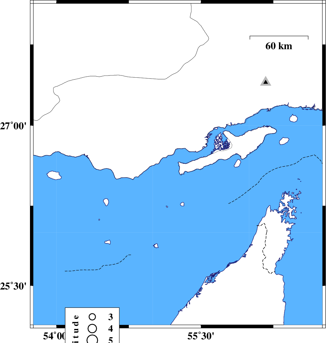 2019/10/18 04:09:38.8 07:39:38.8 26.6355.2614 ML:4 Persian Gulf, 42 km North-East of Bandar-e lengeh