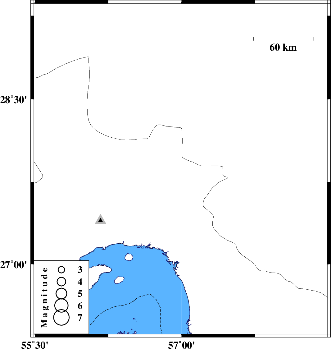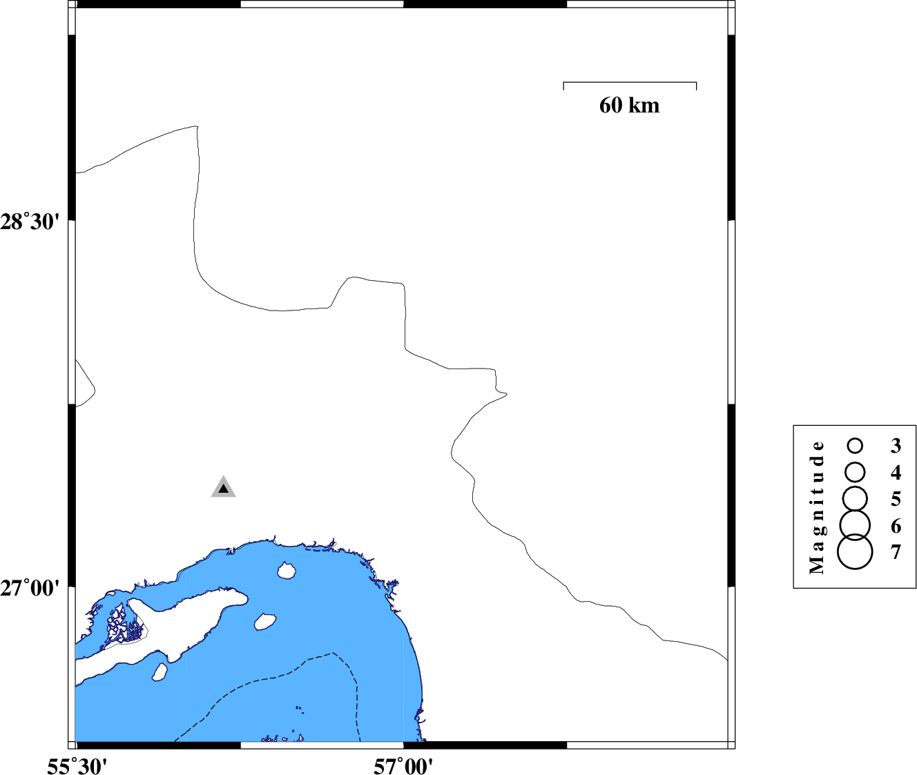 | 2019/10/27 | 16:01:31.2 | 19:31:31.2 | 27.86 | 56.99 | 14 | ML:3.3 | Hormozgan Province, 54 km North-West of Dehbarez |