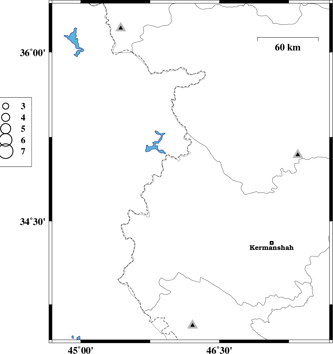 | 2019/11/02 | 04:42:51.6 | 08:12:51.6 | 34.93 | 46.19 | 14 | ML:3.5 | Kermanshah Province, 21 km South-West of Paveh | ||