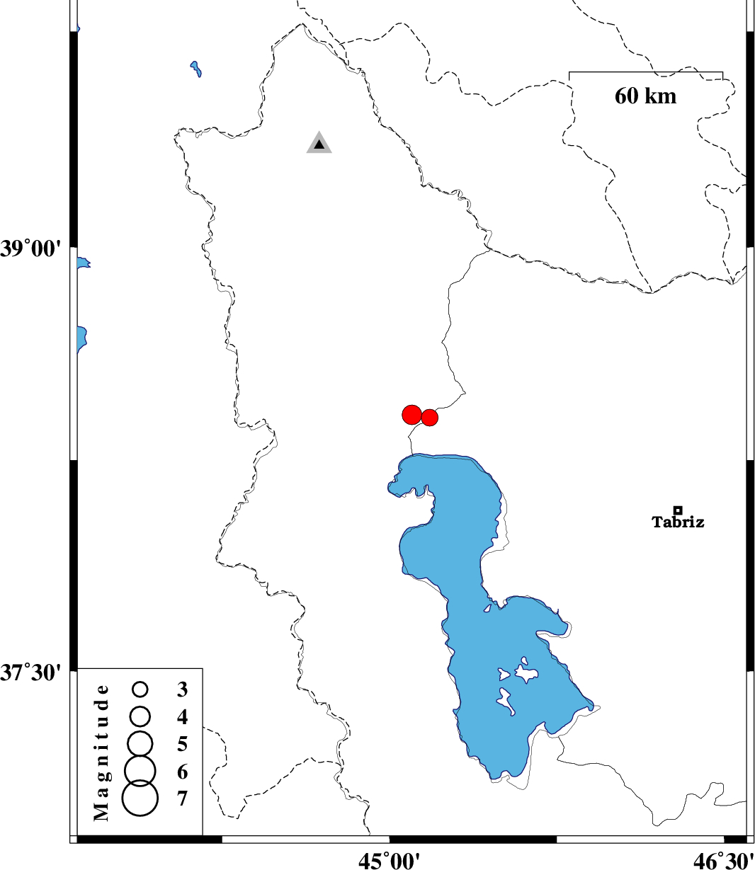 | 2019/11/11 | 00:58:40.6 | 04:28:40.6 | 38.41 | 45.1 | 10 | ML:3.9 | Azarbaijan Gharbi Province, 21 km South-East of Khoy |