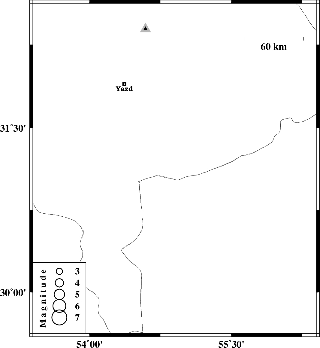 | 2019/11/11 | 08:09:19.5 | 11:39:19.5 | 31.12 | 54.9 | 10 | ML:2.9 | Yazd Province, 67 km South-East of Mehriz |