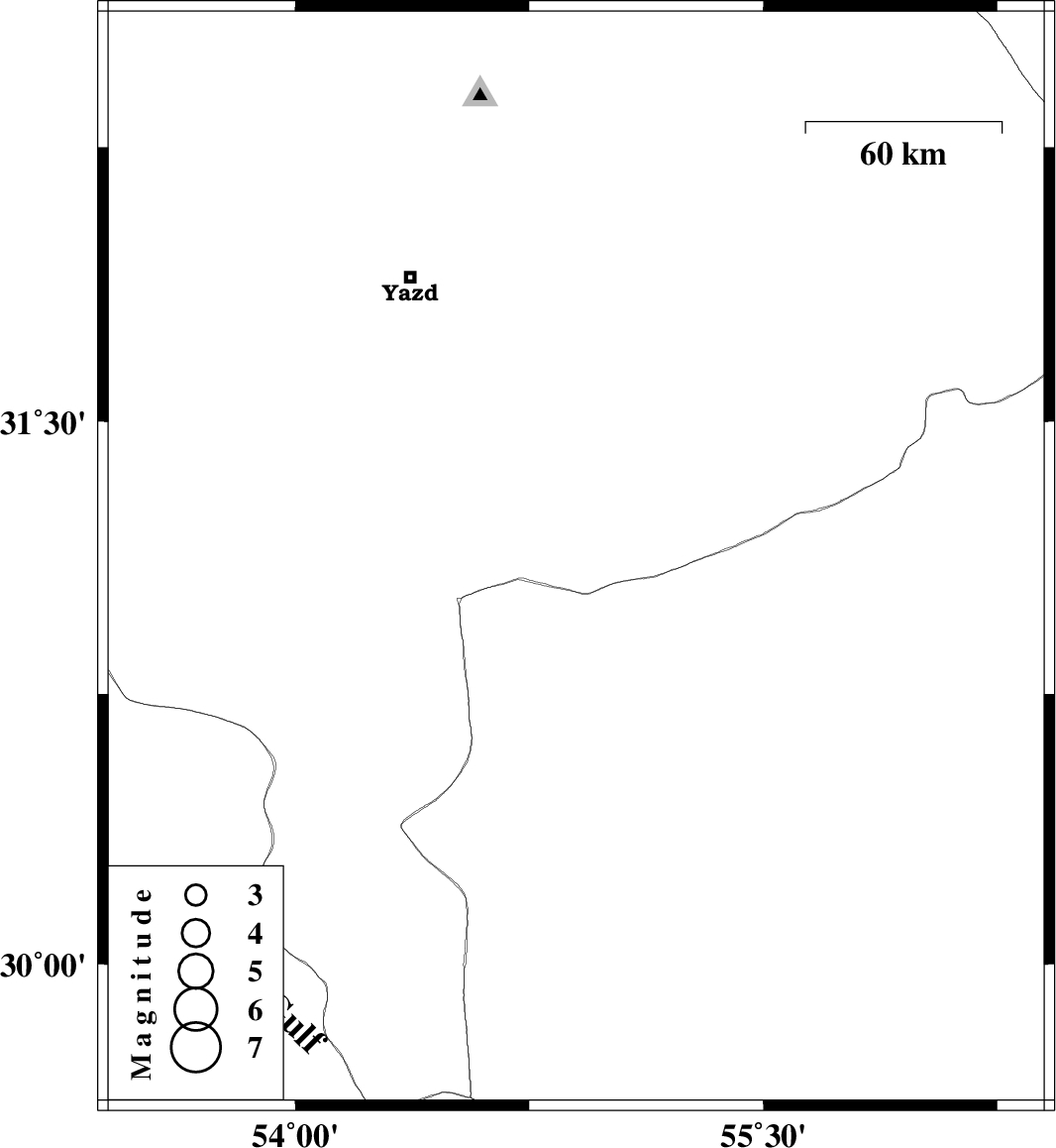| 2019/11/11 | 08:09:19.5 | 11:39:19.5 | 31.12 | 54.9 | 10 | ML:2.9 | Yazd Province, 67 km South-East of Mehriz |