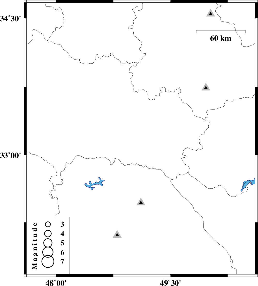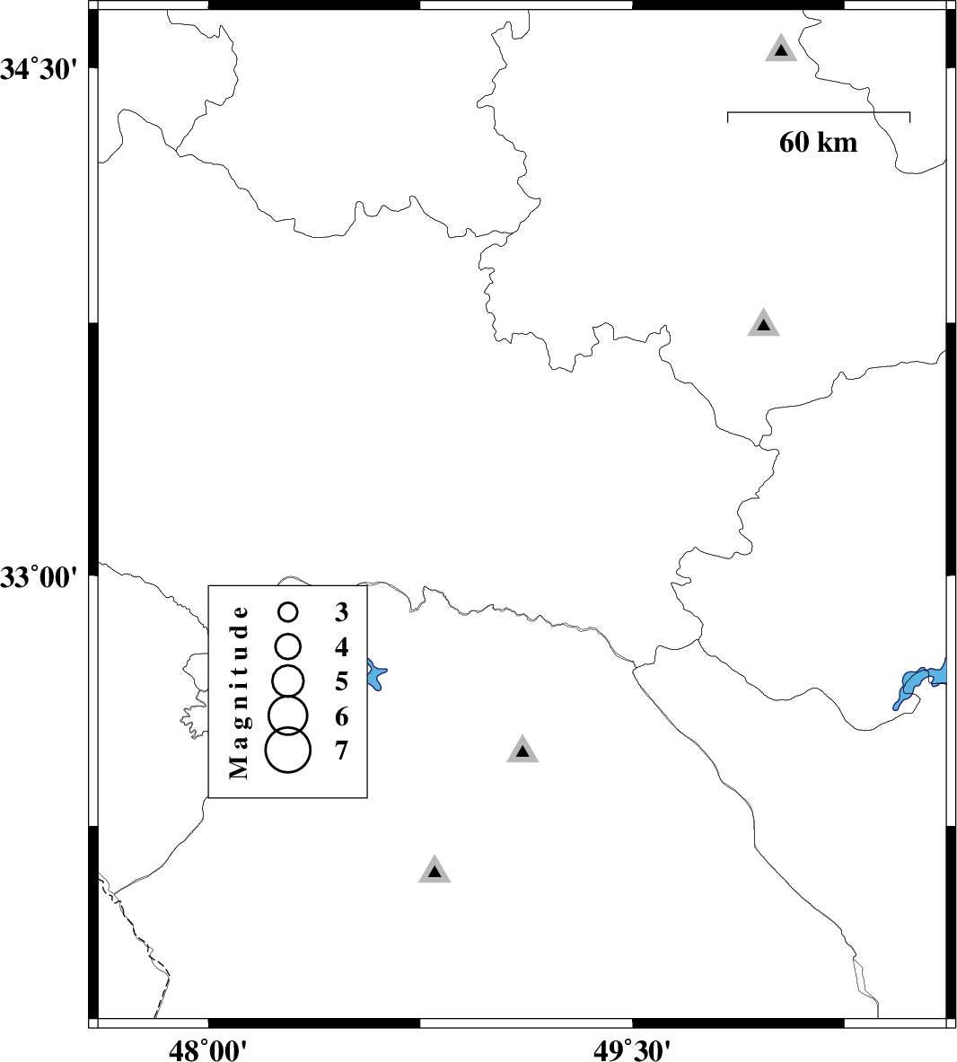 | 2019/11/12 | 11:51:34.3 | 15:21:34.3 | 33.17 | 49.11 | 10 | ML:2.9 | Lorestan Province, 35 km South of Dorud |