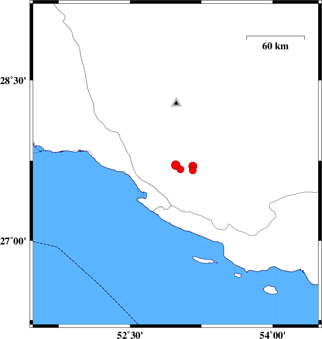 | 2019/11/13 | 19:46:31.3 | 23:16:31.3 | 27.67 | 53.03 | 10 | ML:3.4 | Fars Province, 20 km North-East of Mehr | ||